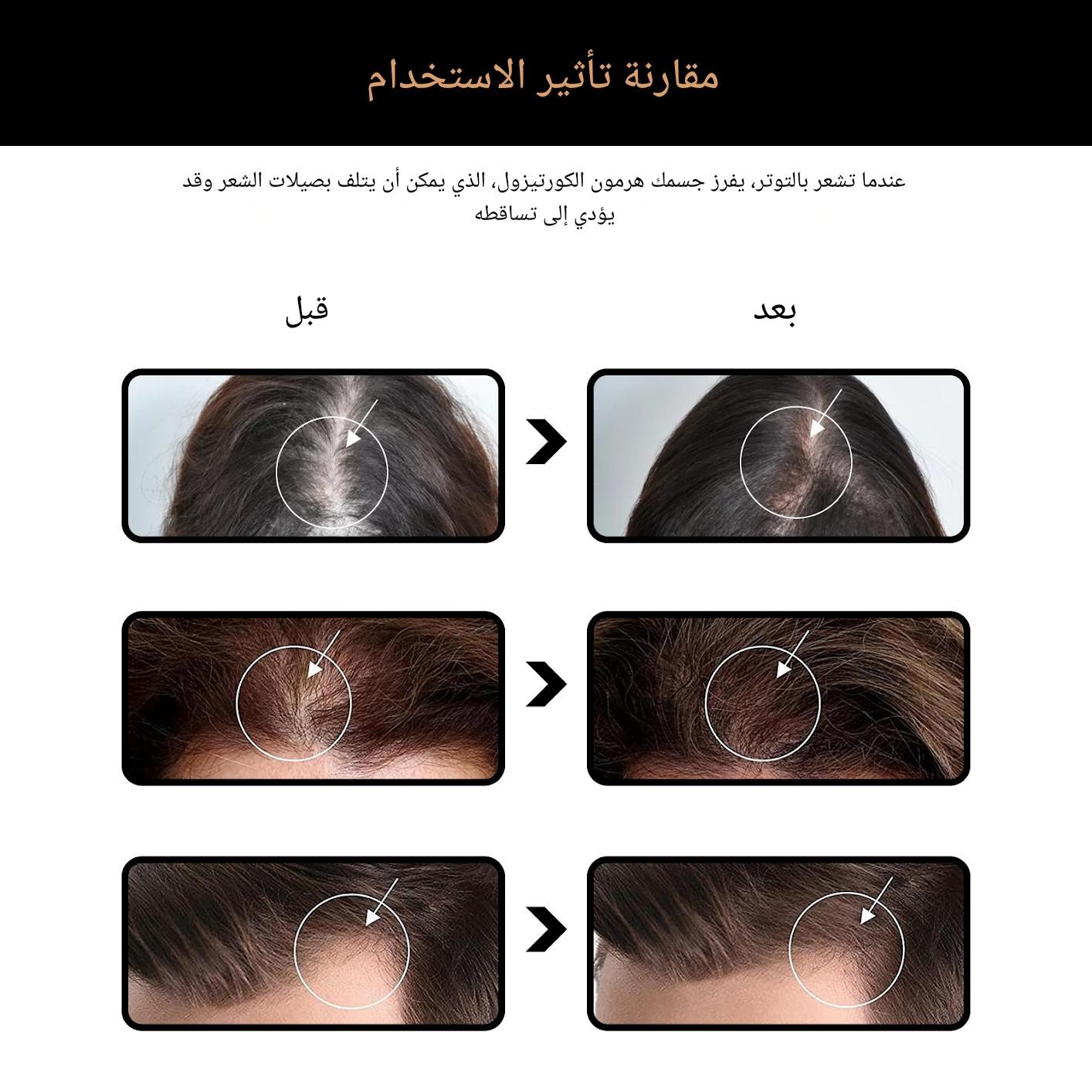 تخترق المكونات النشطة بصيلات الشعر لتحفيز النمو واستعادة السمك في المناطق الخفيفة، مما يجعل الشعر يبدو أكثر امتلاءً وصحة